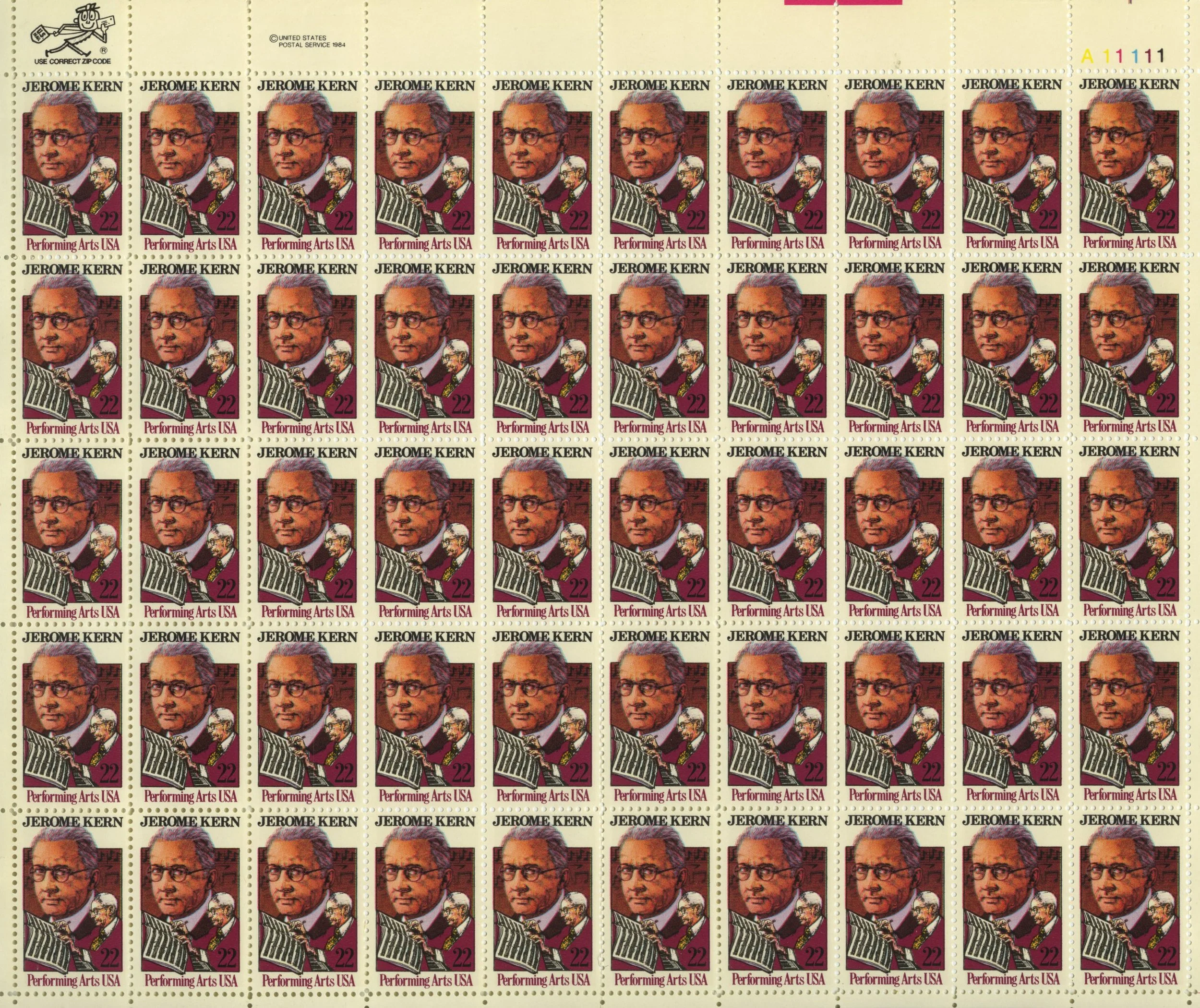 Sheet of Jerome Kern commemorative stamps
