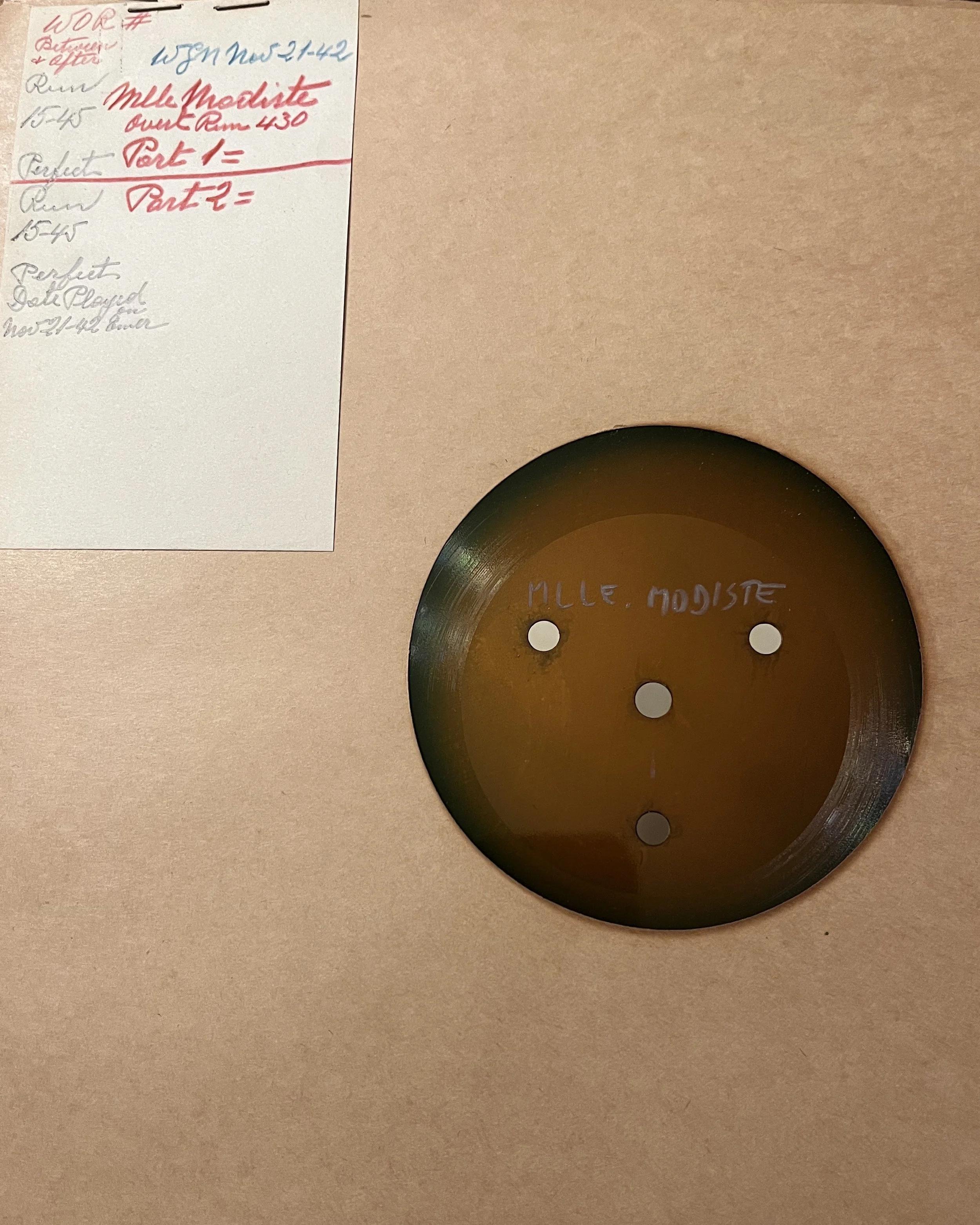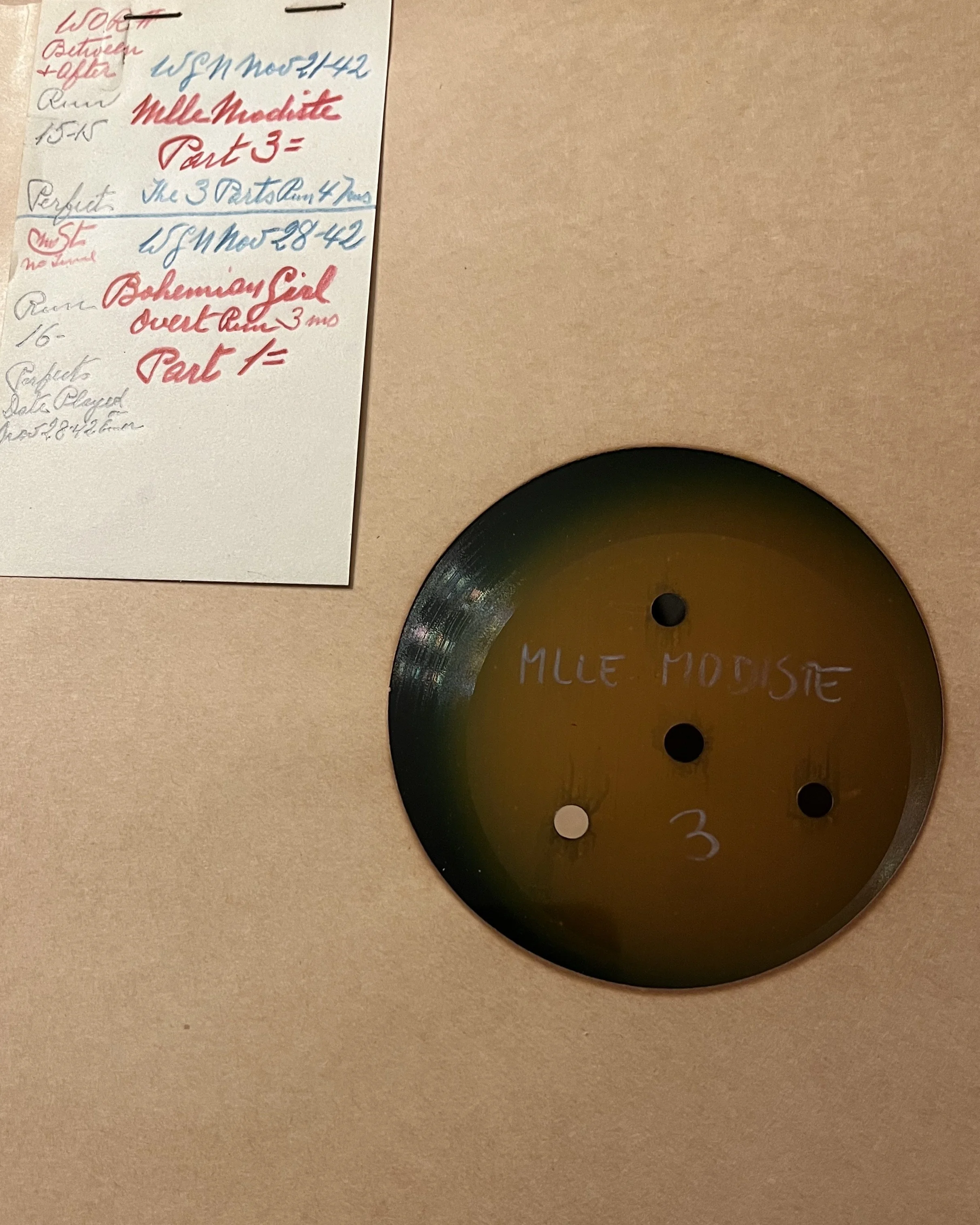 Radio transcription of Chicago Theatre of the Air performance of Mlle. Modiste, November 21, 1942, featuring Marion Claire, conducted by Henry Weber.